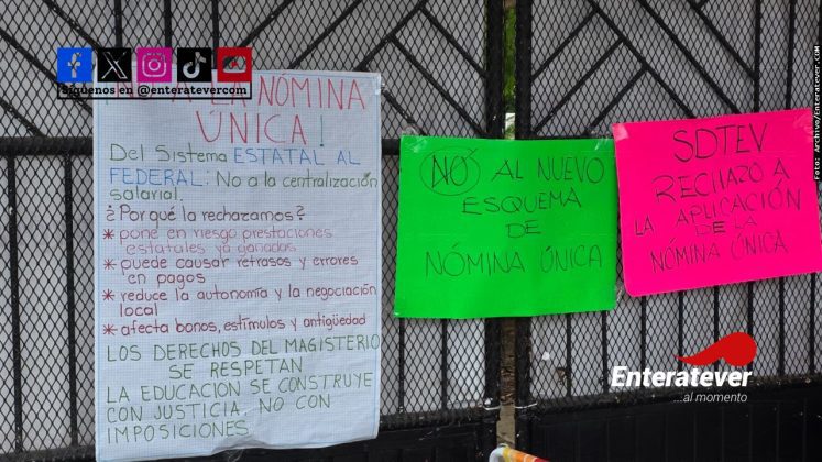 De acuerdo con el SDTEV, la nómina única no solo representa una imposición, sino que podría generar retrasos en la dispersión de salarios, así como en la entrega de estímulos, bonos y prestaciones por antigüedad, lo que incrementa la preocupación entre el personal docente.