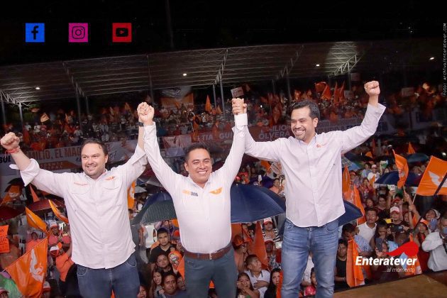 La presencia de Jorge Álvarez Máynez, líder nacional de Movimiento Ciudadano, marcó un respaldo total al proyecto de Olvera. “Gracias por creer en Poza Rica”, dijo el candidato al agradecer el acompañamiento y respaldo del partido naranja.