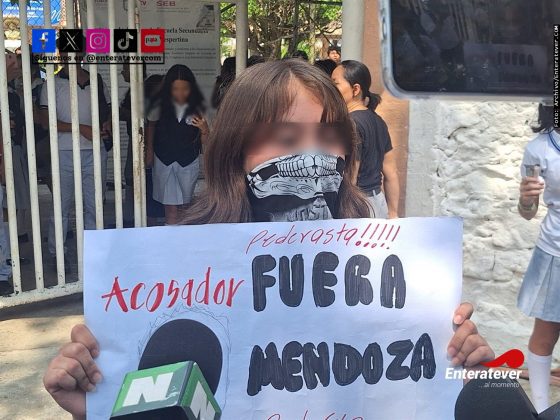 Al grito de “¡Fuera Mendoza!”, estudiantes de la Escuela Secundaria y de Bachilleres Oficial (ESBO) número 8 “Emiliano Zapata” se manifestaron este lunes contra un maestro identificado por su apellido Mendoza, señalado en días pasados por presunto acoso hacia alumnas de secundaria, situación que desató la indignación de alumnos y padres de familia.