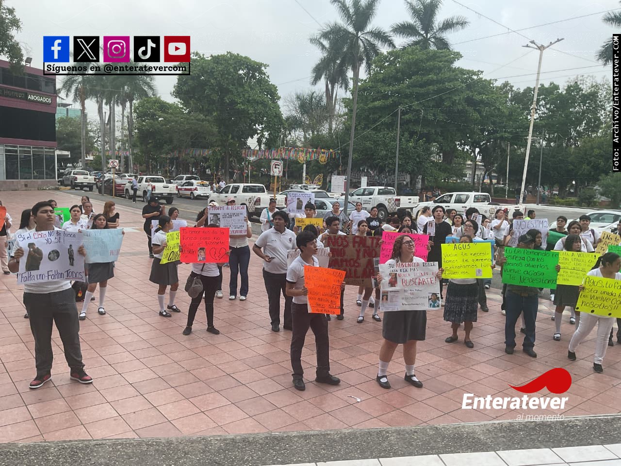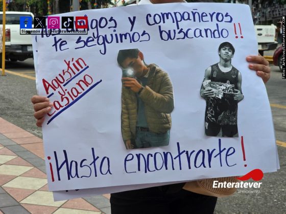 Poza Rica, Ver.- La desaparición del joven Agustín Emmanuel Casiano Hernández, reportada desde el pasado 26 de abril, movilizó a estudiantes del CBTis 78, quienes se congregaron en la explanada del Ayuntamiento de Poza Rica para exigir acciones concretas que permitan localizarlo.