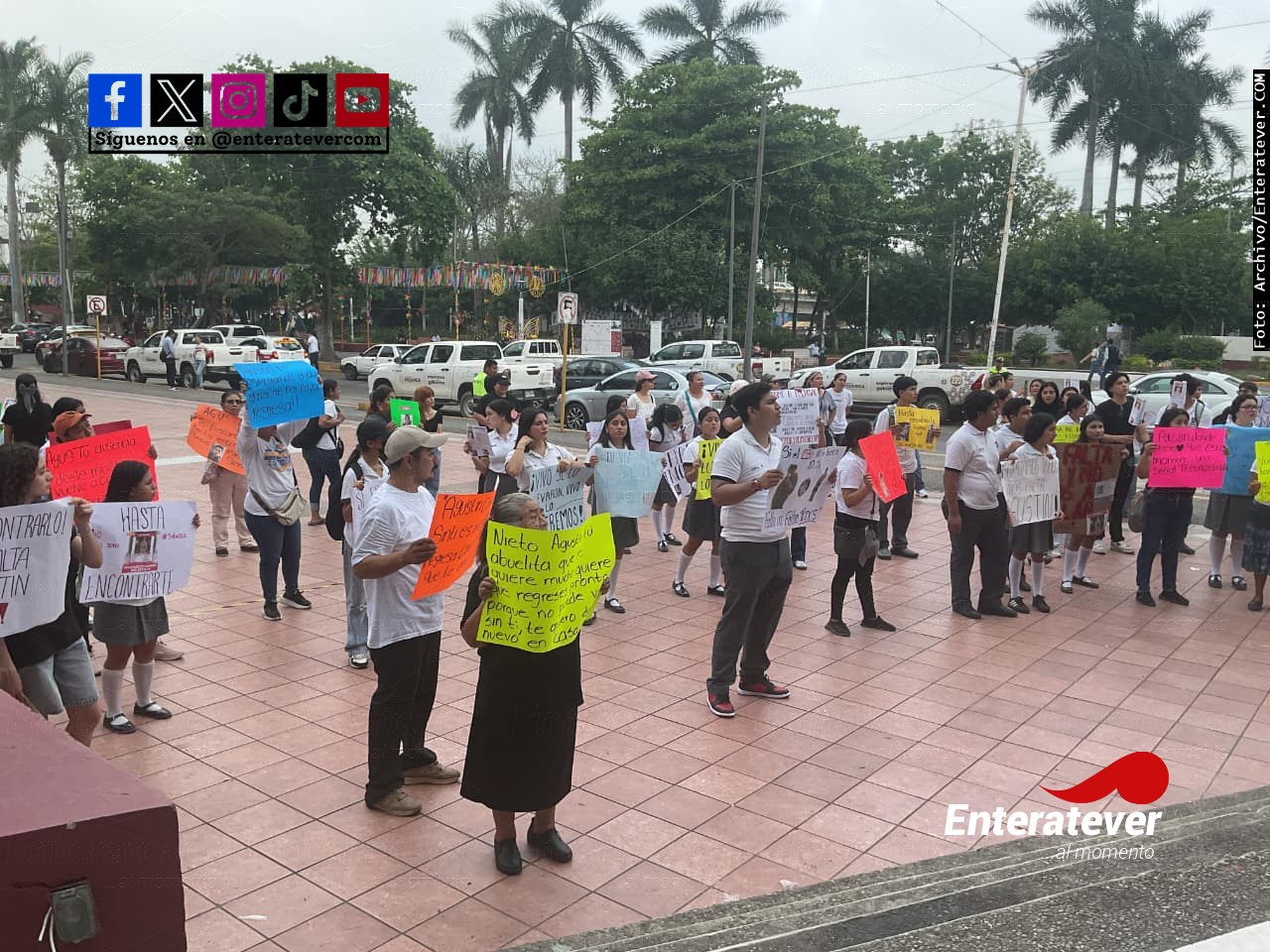 A la manifestación se sumaron padres de familia, amigos y allegados, quienes de manera pacífica alzaron la voz ante la falta de información sobre su paradero, externando preocupación por su seguridad y demandando mayor atención al caso.