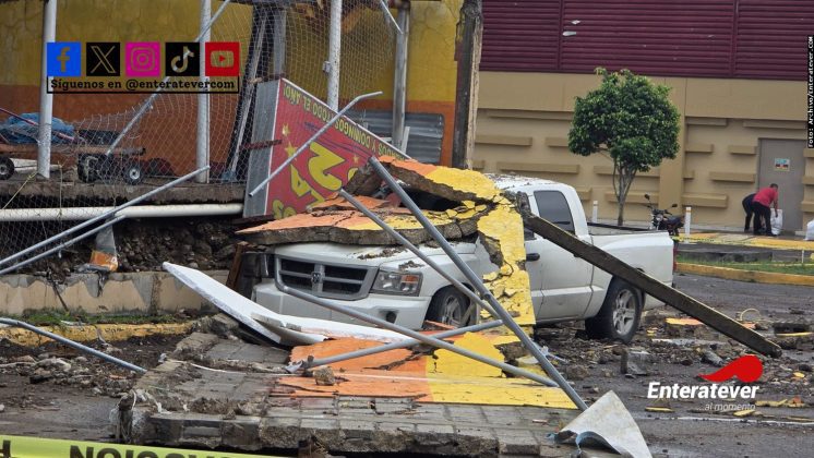 En las inmediaciones del centro comercial Gran Patio, que también resultó totalmente inundado, un anuncio colapsó sobre una camioneta estacionada, ocasionándole daños materiales sin que se reportaran personas lesionadas.