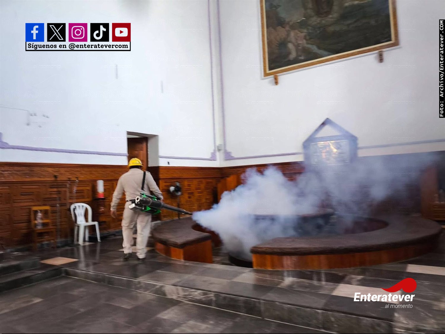 Fumigan iglesia central de Papantla
