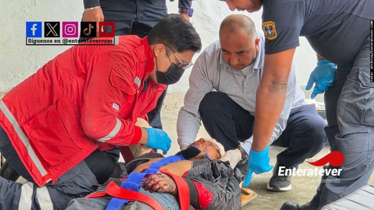 Al sitio arribaron elementos de la Policía Municipal, quienes, con el respaldo de un ciudadano que se encontraba en una farmacia cercana, brindaron los primeros auxilios al lesionado y lograron contener la hemorragia mediante un vendaje improvisado.