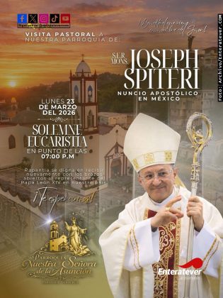 En próximos días se llevará a cabo una visita pastoral al corazon del totonacapan, y es que Papantla recibirá la visita de S.E.R. Mons. Joseph Spiteri, Nuncio Apostólico en México, quien estará en esta ciudad el lunes 23 de marzo de 2026, en un encuentro que ha sido calificado como sumamente especial para la comunidad católica papanteca