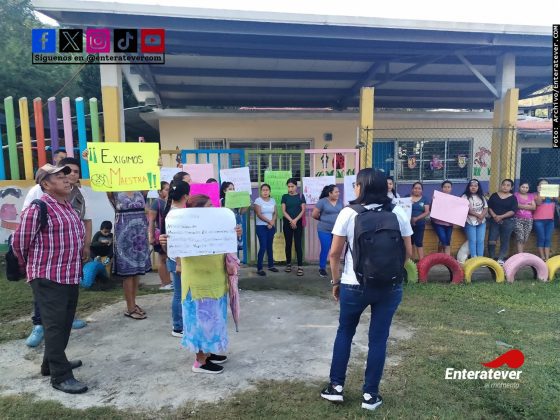 Los inconformes declaran que desde hace dos ciclos el grupo ha estado sin docente ya que la anterior maestra fue cambiada, pero la dependencia de educación no envío algún remplazo a dicho plantel dejando en atraso a los menores.