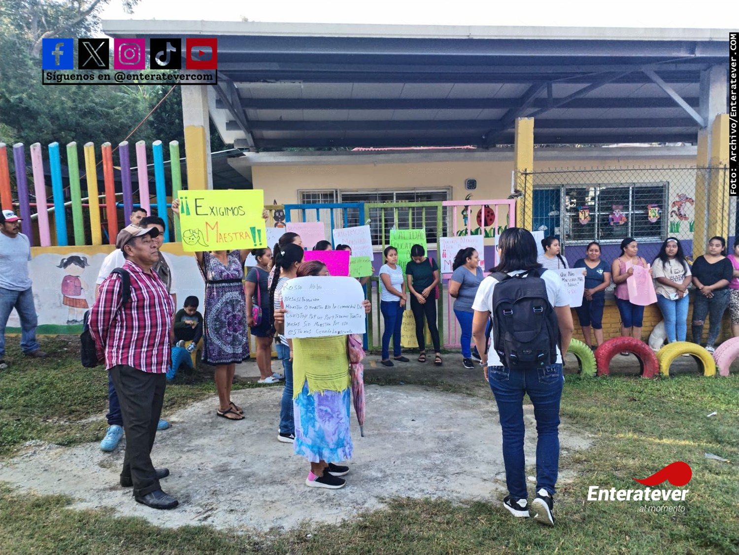 Padres de familia toman instalaciones de jardín de niños en Caristay, Papantla