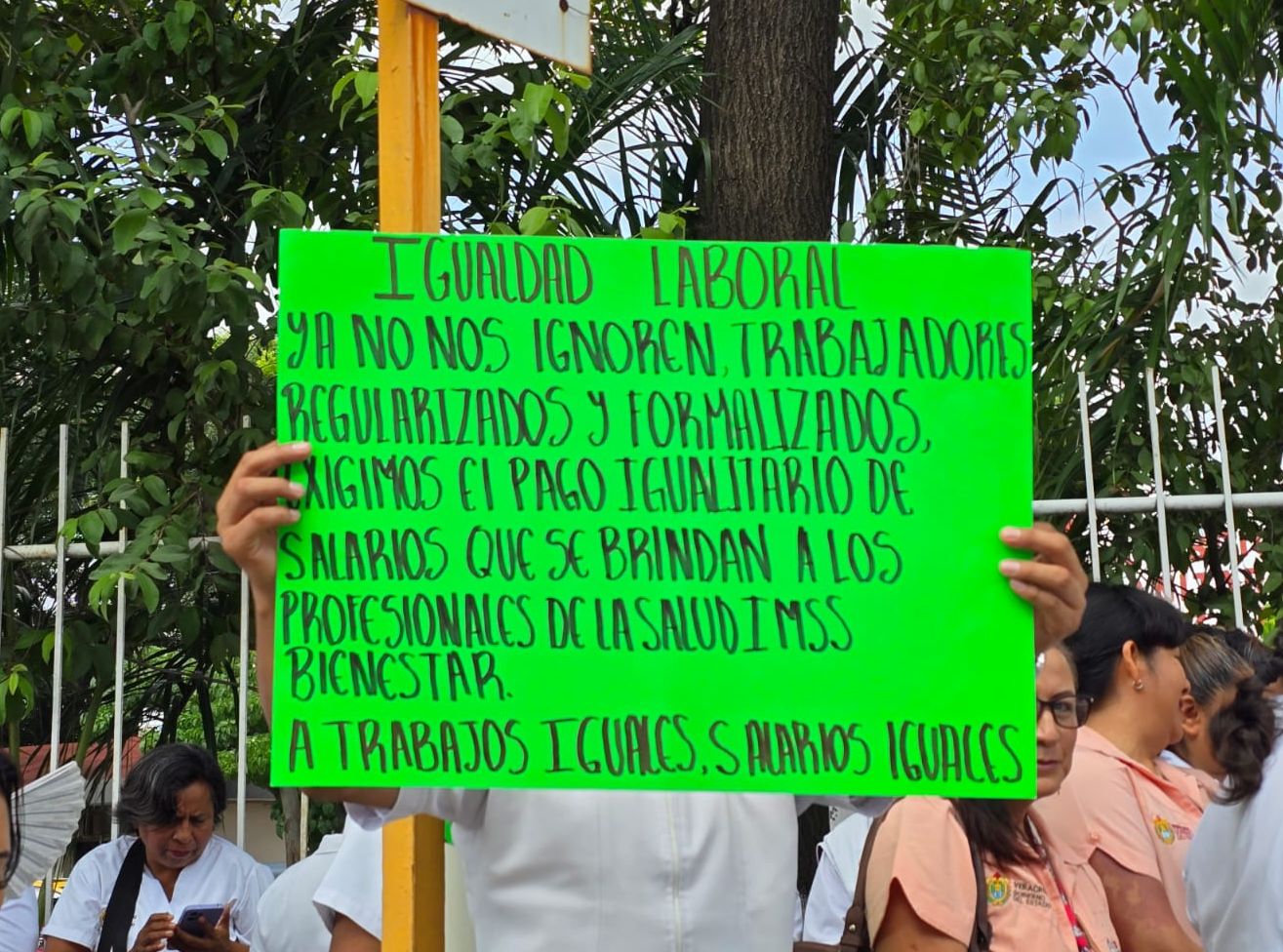 A través de esta movilización, los trabajadores dirigieron un llamado directo a la gobernadora Rocío Nahle García para que intervenga y atienda las demandas que, aseguran, no solo afectan al personal de salud, sino también a los pacientes y a las familias veracruzanas.
