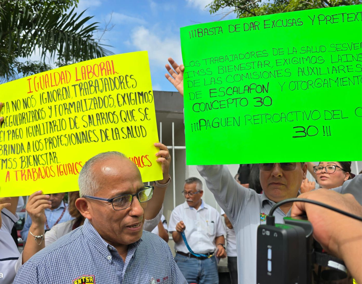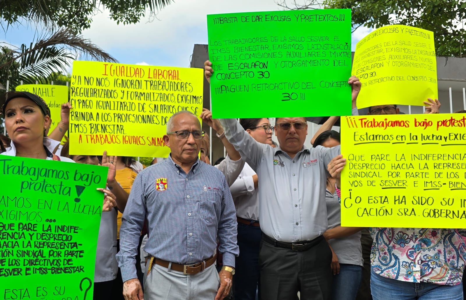 Cabe mencionar que en el hospital Regional de Poza Rica los inconformes colocaron una lona en el acceso principal, en la que exhiben lo que consideran una muestra de maltrato e indiferencia de algunos funcionarios hacia los representantes sindicales.