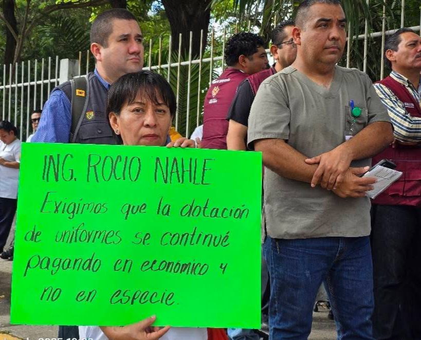 Trabajadores de la Jurisdicción Sanitaria N.º 3 se manifestaron este martes de manera pacífica para exigir a las autoridades estatales que atiendan las malas condiciones laborales y la falta de prestaciones que enfrentan desde hace meses.
