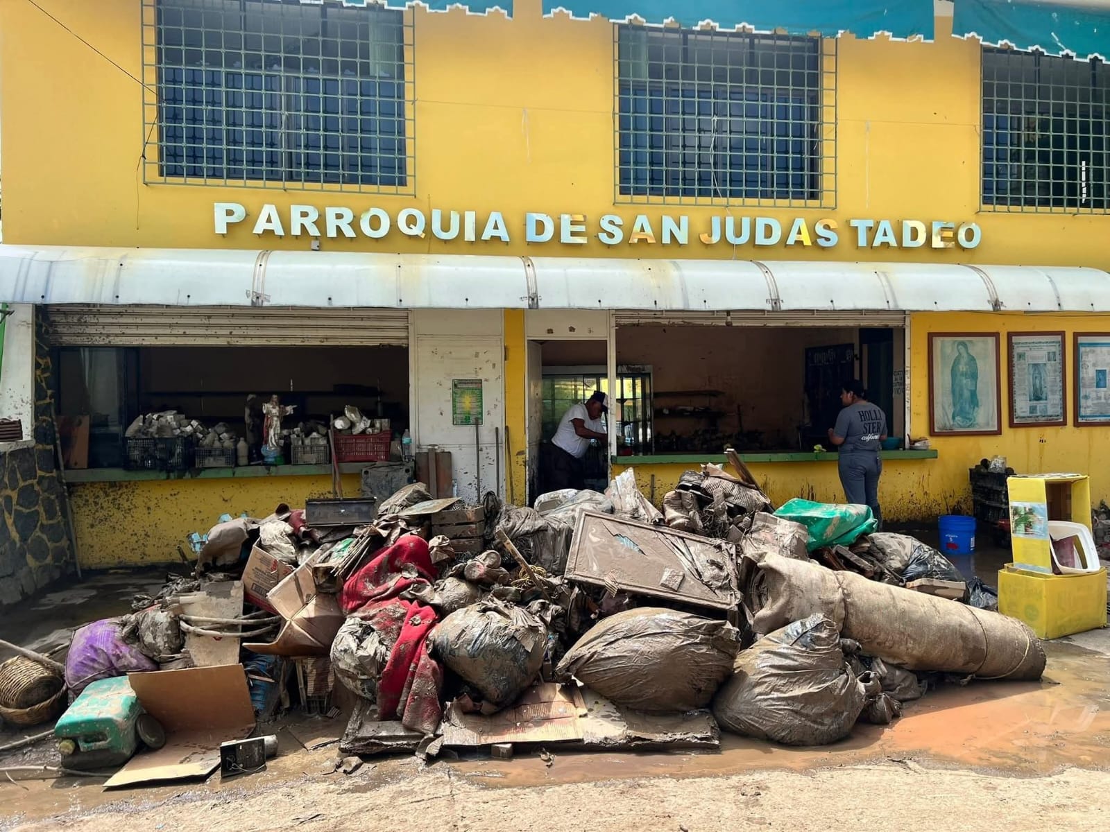 Cabe destacar que la iglesia también resultó afectada por la inundación, por lo que los fieles católicos realizan labores de limpieza y recuperación en las instalaciones para retomar gradualmente las actividades religiosas.
