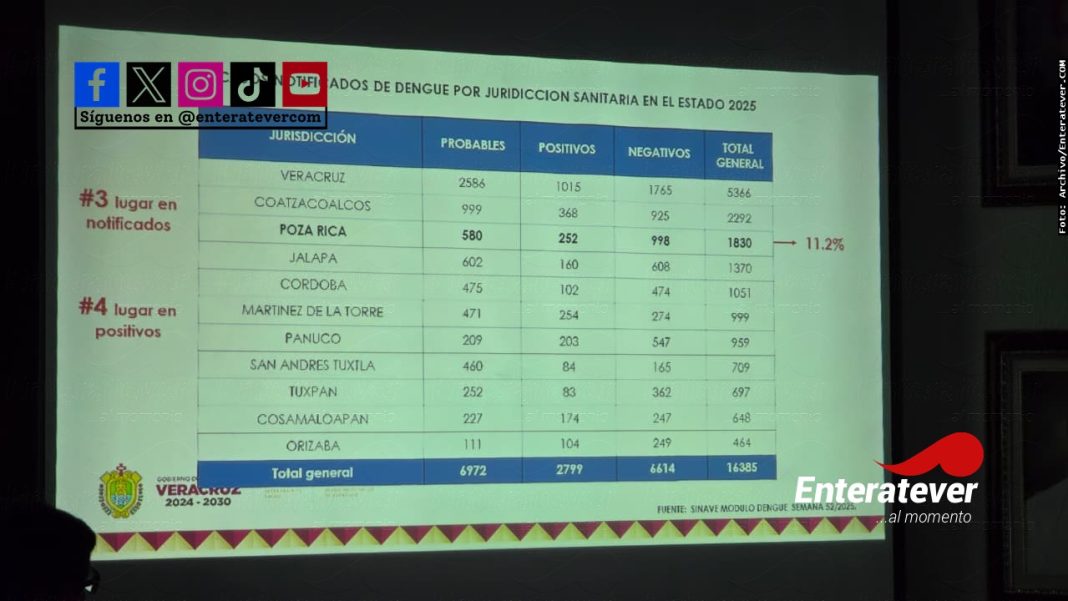 Poza Rica, Ver.- Poza Rica se mantiene como uno de los municipios con mayor incidencia de dengue en Veracruz al ocupar el tercer lugar estatal en casos registrados durante 2025, de acuerdo con cifras oficiales del sector salud, escenario que derivó en la instalación formal del Subcomité Municipal contra el Dengue, Zika y Chikungunya.