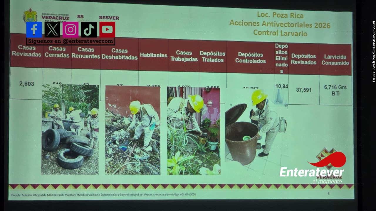Durante la presentación del panorama epidemiológico, se informó que el municipio concentra el 57.9 por ciento de los casos confirmados dentro de la Jurisdicción Sanitaria Número III, siendo las colonias Lázaro Cárdenas, Petromex y Arroyo del Maíz las que reportan la mayor incidencia de contagios.