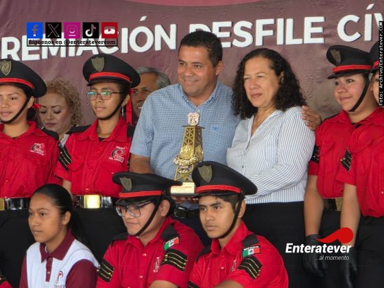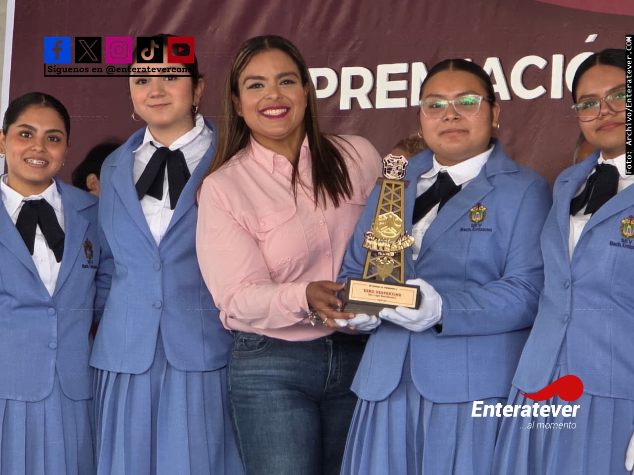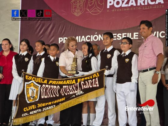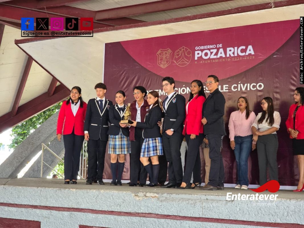 Poza Rica, Ver.- Escuelas que participaron en el desfile cívico fueron reconocidas por el Ayuntamiento de Poza Rica en una ceremonia realizada en la pérgola del Parque Juárez, donde se destacó el papel de la comunidad estudiantil en este tipo de actividades.