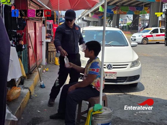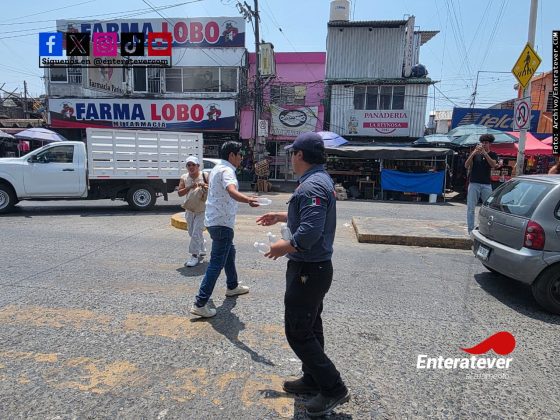 Poza Rica, Ver.- Como parte de las acciones para hacer frente a las altas temperaturas que persisten en la ciudad, la Unidad Municipal de Protección Civil implementó un operativo de distribución de agua potable en puntos estratégicos de mayor concentración peatonal.