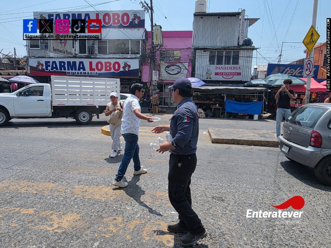 El despliegue se realiza principalmente en el primer cuadro de la ciudad, donde brigadas recorren calles y paradas del transporte público para brindar hidratación a ciudadanos que transitan bajo condiciones de calor extremo.