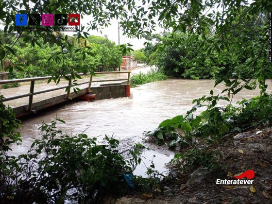 A través de imágenes captadas por los habitantes de esta zona se observa el desbordamiento parcial en diversos puntos, situación que genera preocupación por el riesgo de inundaciones en dichas comunidades.