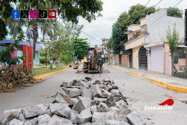Poza Rica, Ver.- Trabajos de rehabilitación vial se llevan a cabo en la colonia Tajín y el bulevar Adolfo Ruiz Cortines, como parte de las acciones para mejorar las condiciones de tránsito en puntos clave de la ciudad.