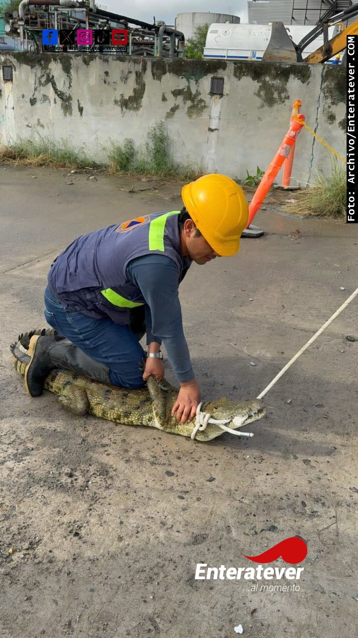 Poza Rica, Ver.- La inesperada presencia de un cocodrilo en calles de la colonia División de Oriente generó momentos de tensión entre habitantes del sector Escolín, quienes solicitaron apoyo de las autoridades al detectar al ejemplar en un área habitada.