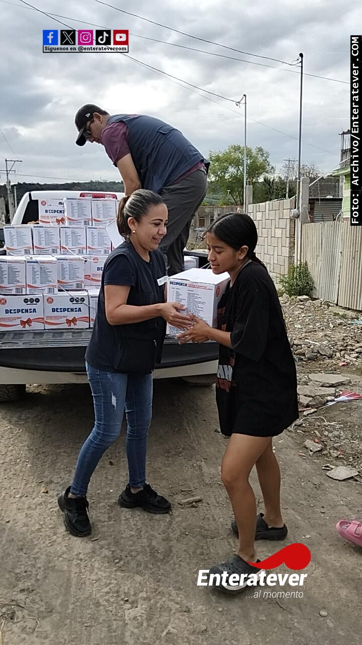 En Poza Rica, las despensas fueron entregadas en espacios como la Secundaria Federal No. 2 “Alfonso Arroyo”, la Escuela Primaria “Benemérito de las Américas” en la colonia Lázaro Cárdenas, así como en la colonia La Esperanza, donde también se contó con la colaboración de padres de familia y directivos escolares para facilitar la logística.