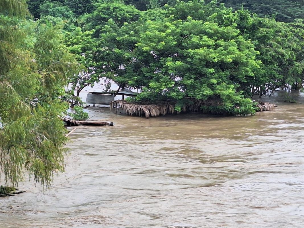 El afluente alcanzó este jueves un nivel de 4.50 metros, cubriendo casi por completo las palapas ubicadas en sus orillas. Desde ayer, varias familias comenzaron a sacar sus pertenencias para evitar que fueran arrastradas por la corriente.
