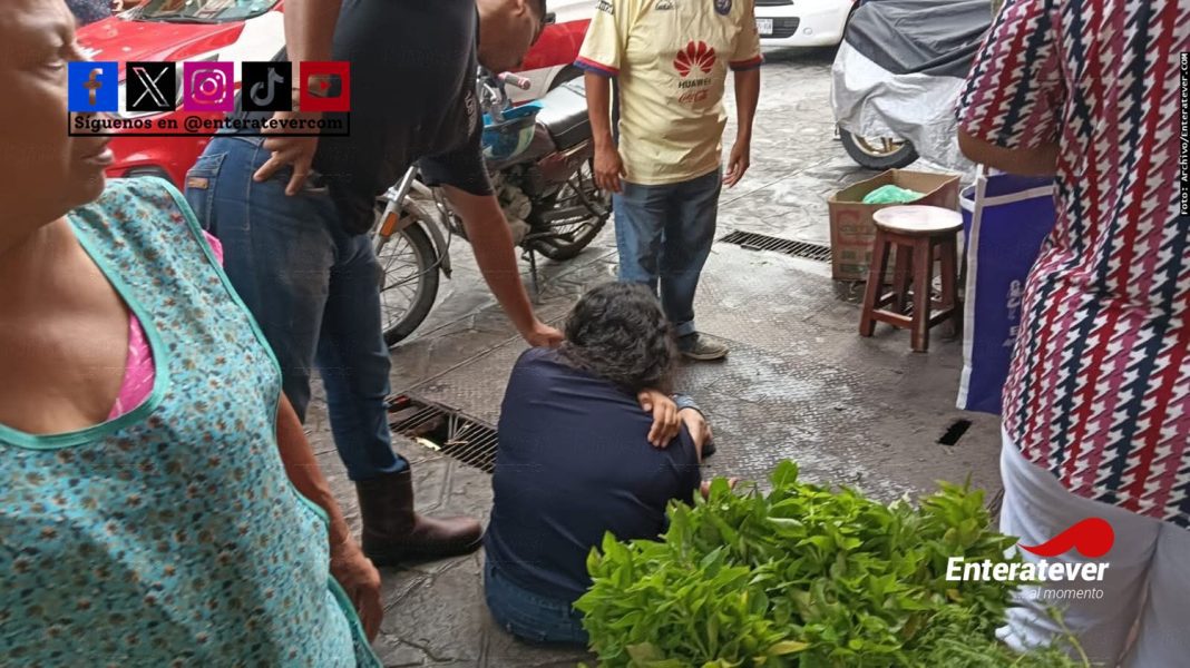 Una persona del sexo femenino terminó lesionada de una de sus extremidades luego de que sufriera una caída en la calle Aquiles Serdán, esto frente al mercado municipal Miguel Hidalgo en el corazón de la ciudad vainillera.
