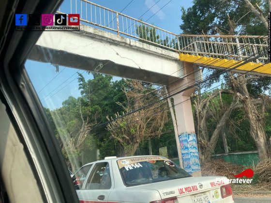 Sobre el cruce de lo bulevar Central Poza Rica y la avenida Venustiano Carranza del municipio petrolero se encuentra un cruce peatonal, mismo que es de beneficio para alumnos del cercano CBTIS, sin embargo, conductores que diariamente transitan por esta importante arteria temen el colapso de dicho puente peatonal.