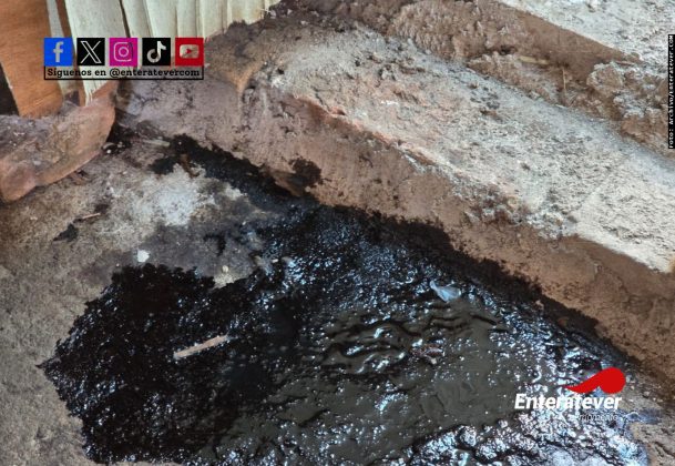 De acuerdo con los vecinos, varias casas presentan brotes de crudo y, aunque el problema lleva años, Pemex no ha ofrecido una solución definitiva.