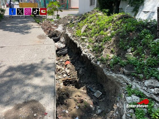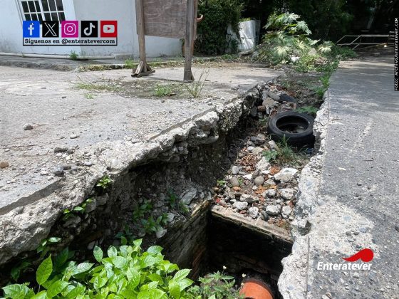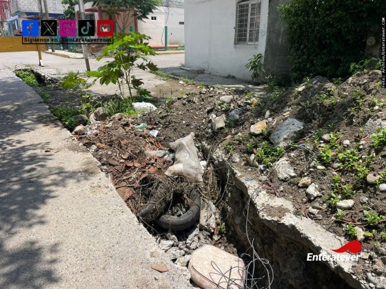 La denunciante señaló que, además de la falta de avance en la obra, algunos vecinos han arrojado llantas y basura al hueco, lo que ha convertido el sitio en un basurero clandestino y un foco de infección para las familias de la zona.