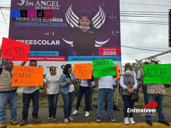 Poza Rica, Ver.- En demanda de certeza laboral, un grupo de 40 trabajadores eventuales del área de Vectores del Sector Salud se manifestó de manera pacífica sobre el bulevar Adolfo Ruiz Cortines, donde exigieron que se respete el proceso de basificación anunciado a nivel estatal.